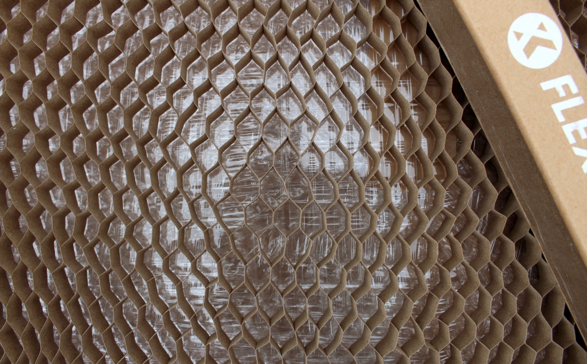 This fantastic product. Flexi-Hex. It may be made out of cardboard but it’s surprisingly strong and durable. The unique honeycomb design gives the packaging high compression resistance giving you confidence that your product will arrive at destination damage free. Just Look! It takes the weight of an adorable 12kg Labrador puppy without the slightest sign of damage.