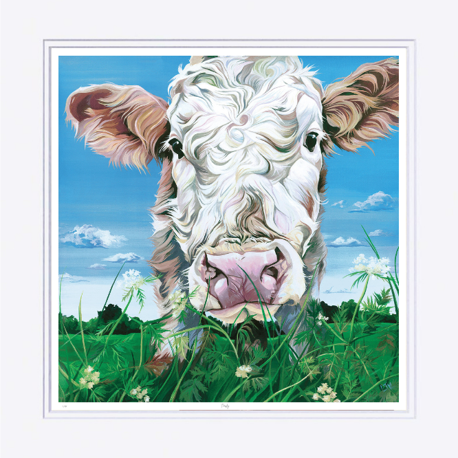 This curious Simmental peering through the Cow Parsley to find the camera sums up everything I love about Cows. The inquisitiveness captured in this painting is so heart warming. It makes me smile and I love it.